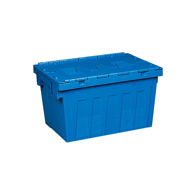 1. 物流箱为可插式、带连体外翻箱盖;把手搬运舒适,空箱套入时,把手在外。